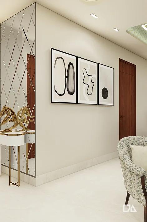 Designing a modern, luxurious 4BHK apartment on the 10th floor of Zirakpur's Affinity Greens into a bespoke modern haven. The project called for seamless functionality, bold aesthetics, and smart space utilisation to reflect the glamour of an accomplished professional while accommodating the client’s intimate moments with their family.